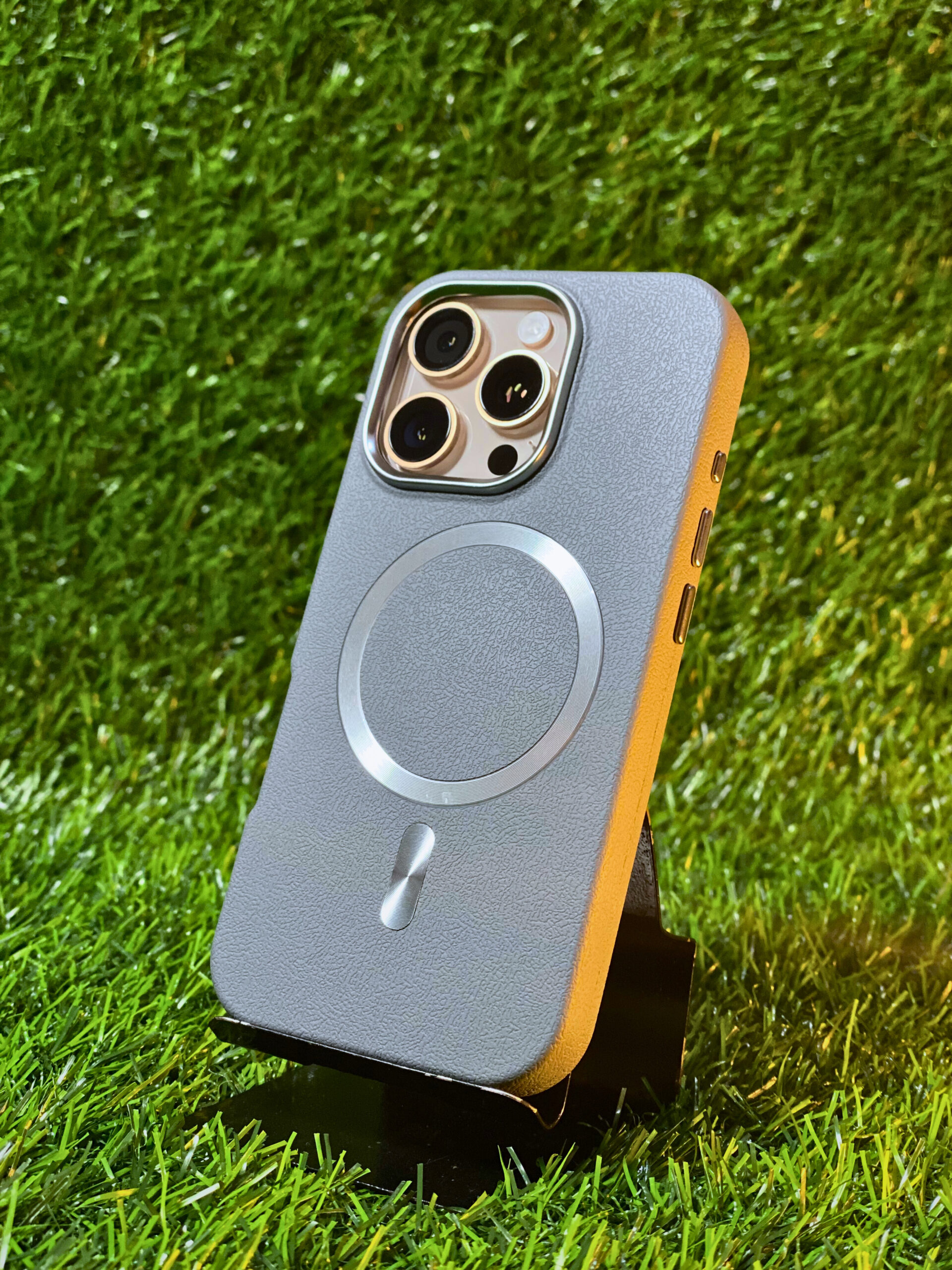 Add elegance and protection to your iPhone with the Trendy Zone® MagSafe Grip Case. Crafted with a smooth leather-textured finish, this case combines premium looks with everyday practicality. The built-in MagSafe ring ensures effortless charging and secure magnetic attachments, while the raised camera ring adds extra protection to your lens.